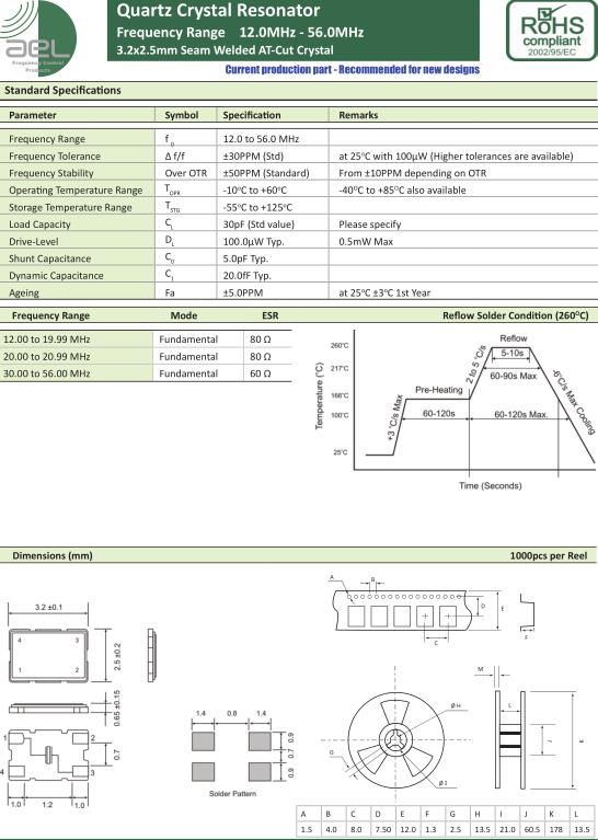 | AEL晶振規格 | 單位 | AEL3225晶振頻率范圍 | 石英晶振基本條件 |