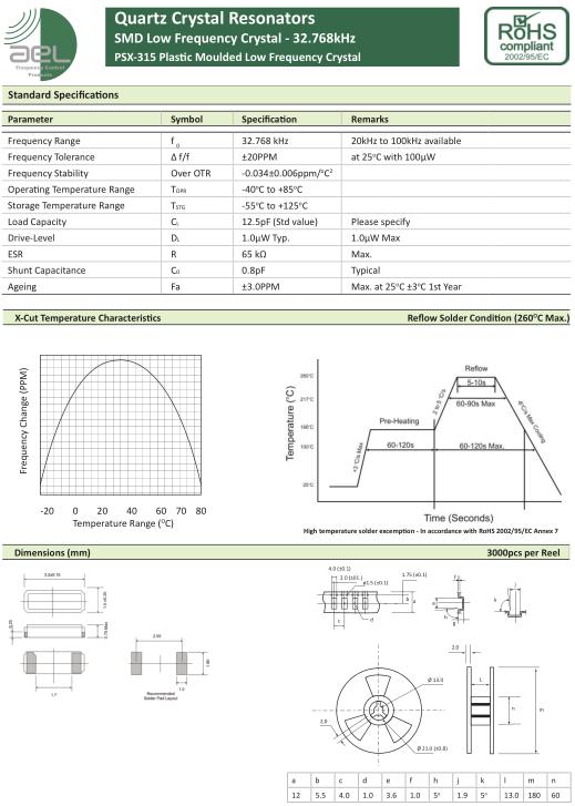 | AEL晶振規(guī)格 | 單位 | PSX-315晶振頻率范圍 | 石英晶振基本條件 | |