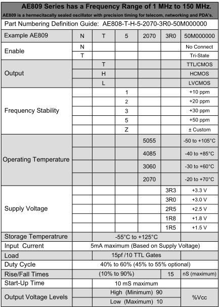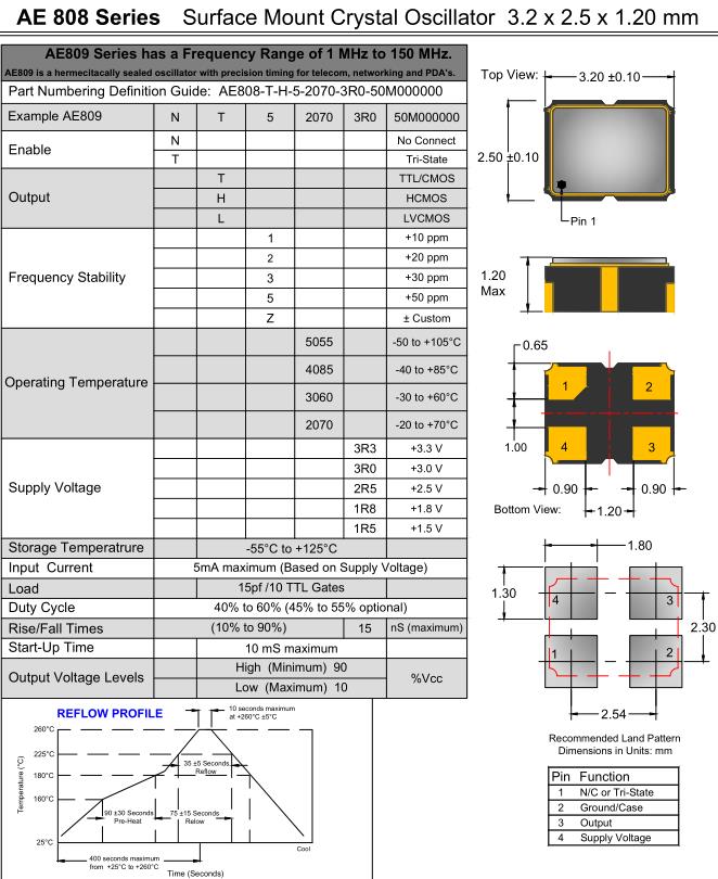 Anderson晶振,AE808晶振,AE808-TH52070-3R0-50M000000晶振