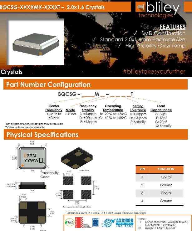 Bliley晶振,BQCSG晶振,BQCSG-16.000M-FDBBFT晶振,貼片晶振本身體積小,超薄型石英晶體振蕩器,特別適用于有目前高速發(fā)展的高端電子數(shù)碼產(chǎn)品,因?yàn)榫д癖旧硇⌒突枨蟮氖袌鲱I(lǐng)域,小型,薄型是對應(yīng)陶瓷振蕩器(偏差大)和普通的石英晶體振蕩器(偏差小)的中間領(lǐng)域的一種性價(jià)比較出色的產(chǎn)品.產(chǎn)品廣泛用于筆記本電腦,無線電話,衛(wèi)星導(dǎo)航SSD,USB,Blu-ray等用途,符合無鉛焊接的高溫回流焊曲線特性.Bliley晶振公司發(fā)展歷史: