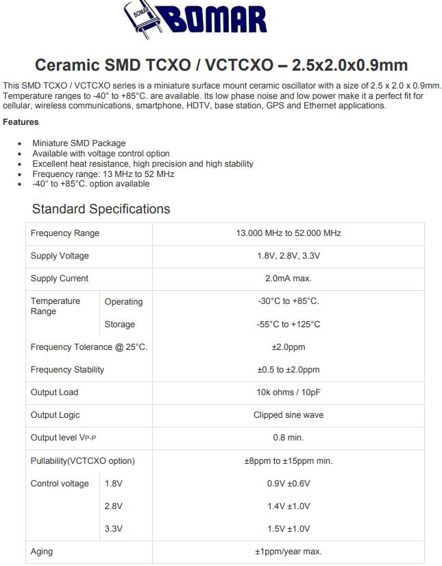 在 90 年代初期的強勁增長時期,Bomar晶振與一些精選的亞洲工廠建立了密切的合作關系,以生產符合 Bomar 規格的產品。只有在 Bomar 對其流程和產品進行了認證后,這些關系才得以建立。今天,Bomar 擁有大量晶體、時鐘振蕩器、VCXO壓控晶振和 TCXO晶振的低成本來源,繼續我們 50 年的承諾,即提供在價格、質量和客戶支持方面滿足或超過客戶期望的高性能頻率控制解決方案。Bomar晶振,B1701-DEAS3R-20.000000晶振,TCXO溫補晶振.