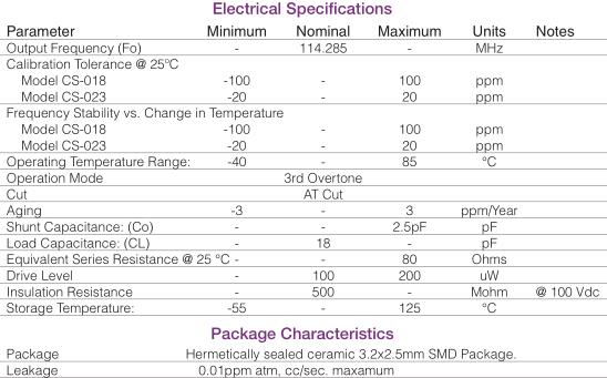 康納溫菲爾德晶振,CS-018晶振,CS-018-114.285M晶振