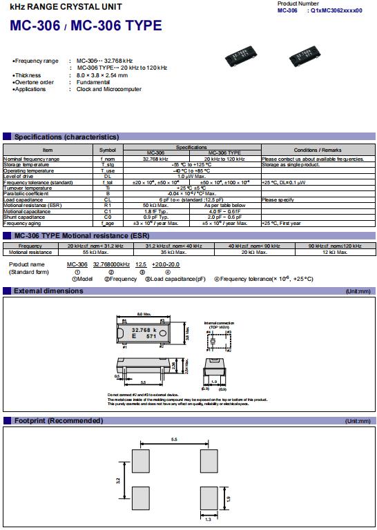 | 晶振參數 | 符號 | MC-306 | |