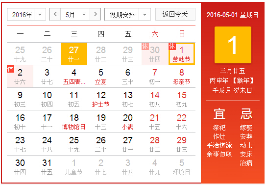1、放假時(shí)間4月30日至5月2日(星期六至星期一)放假,共計(jì)3天,5月3日(星期二)正常上班.