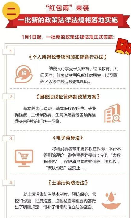 二 1月1日起一批新的政策法律法規(guī)正式施行:‘紅包雨’的惠民政策來(lái)襲!