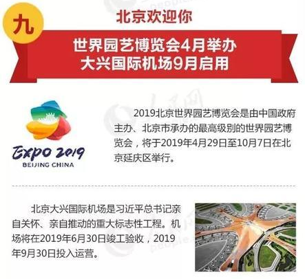 九 北京歡迎你,世界園藝博覽會(huì)4月到10月舉行,大興國(guó)際機(jī)場(chǎng)9月正式對(duì)外開(kāi)放