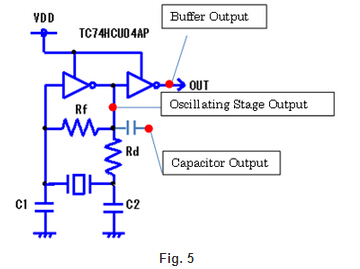 探頭不影響圖2,因為從緩沖區(qū)的輸出是通過在下一階段的振蕩電路的輸出輸入到逆變器.