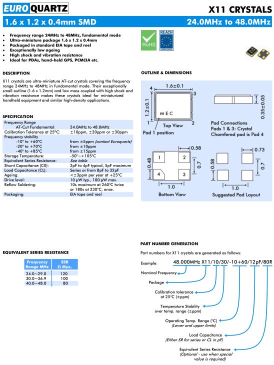 Euroquartz晶振,X11晶振,48.000MHzX11/10/30/-10+60/12pF/80R晶振.