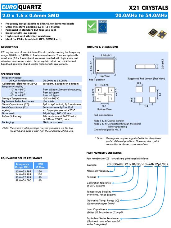 | Euroquartz晶振規(guī)格 | 單位 | X21晶振頻率范圍 | 石英晶振基本條件 |
