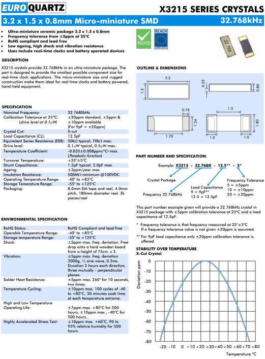 Euroquartz晶振,X3215晶振,X3215-32.768K-12.5-5晶振