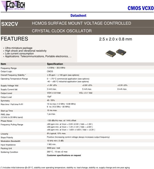 FCD-Tech晶振,SX2CV晶振,SX2CV-28F25F4P80-20.000MHz晶振