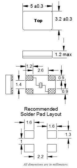 福克斯晶振C5BQ,FQ5032B-20.000無源晶體 尺寸圖