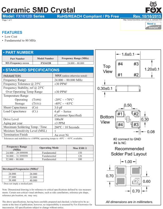 | FOX晶振規格 | 單位 | FX1612B晶振頻率范圍 | 石英晶振基本條件 |