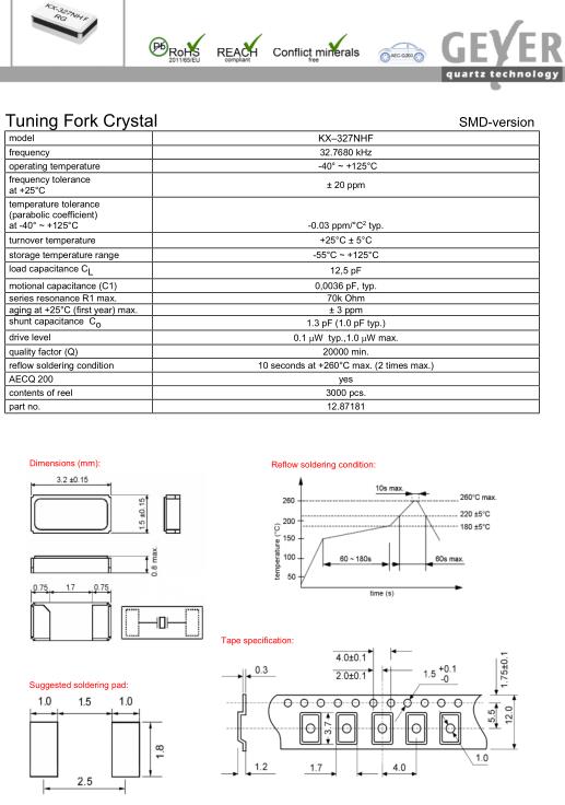 | GEYER晶振規格 | 單位 | KX-327NHF晶振頻率范圍 | 石英晶振基本條件 | |