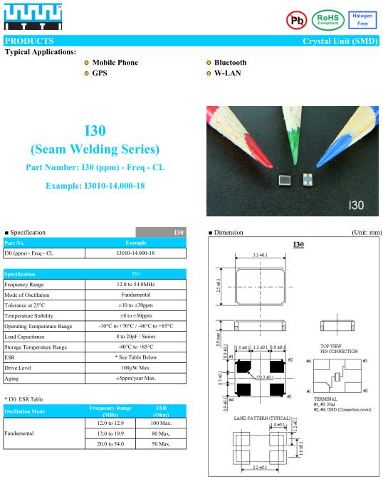 ITTI晶振,I30晶振,I3010-14.000-18晶振
