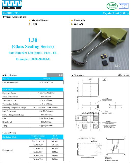 ITTI晶振,L30晶振,L3050-20.000-8晶振