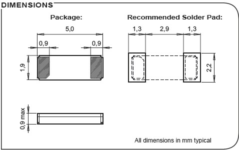 微晶晶振CC4V-T1A,CC4V-T1A-32.768k-9pF-20PPM-TA-QA音叉晶體 尺寸圖