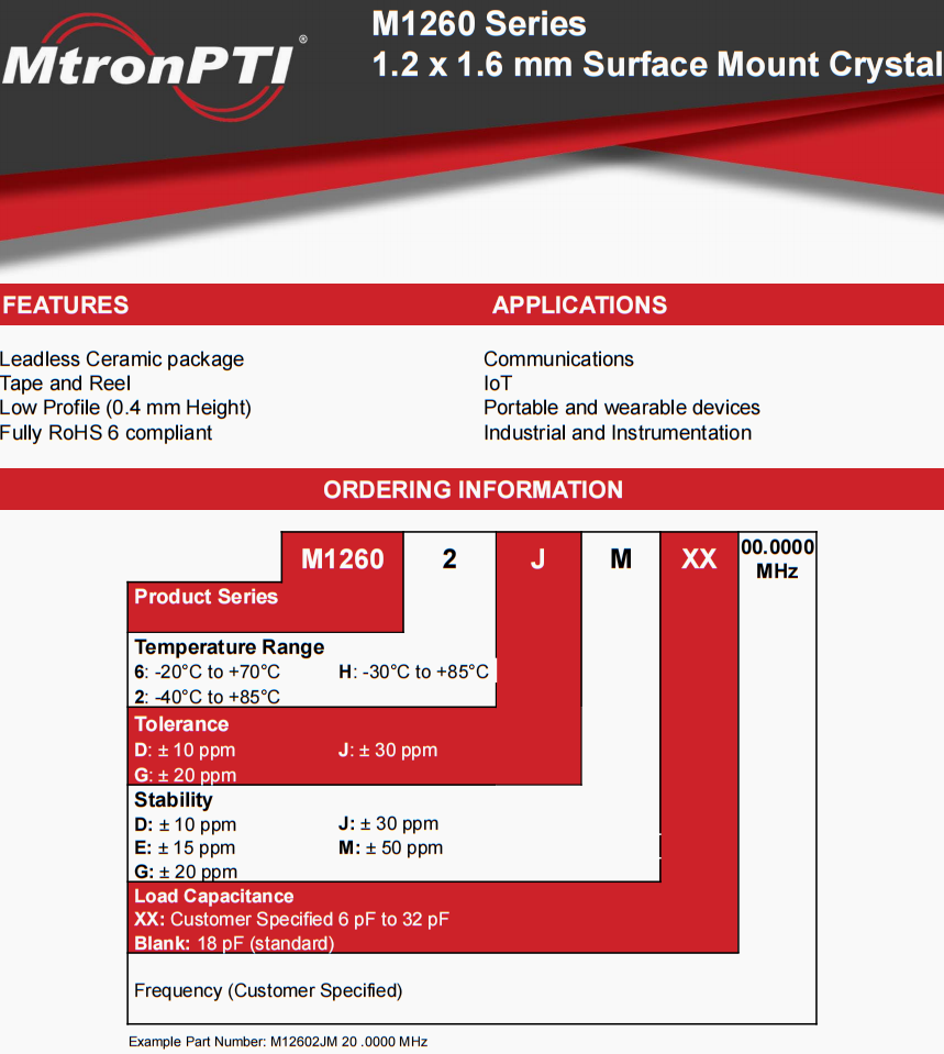 M1260HGG3238.000000MHz晶振,進口MtronPTI超小型晶振,無人機檢測模塊晶振