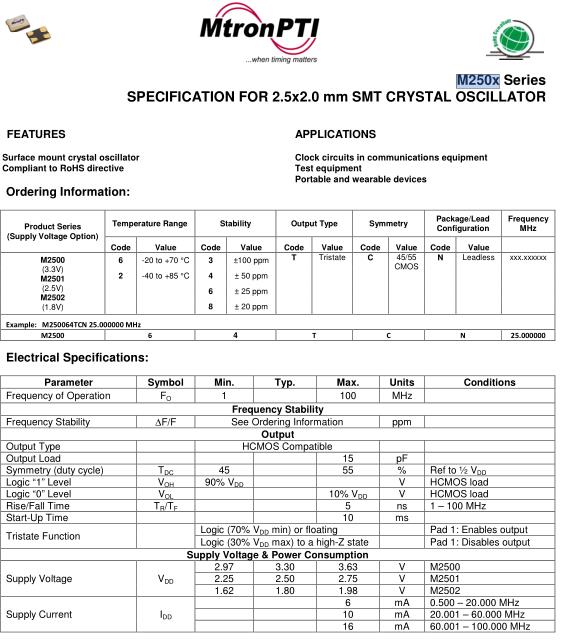 MtronPTI晶振,M250X晶振,M250064TCN25.000000MHz晶振