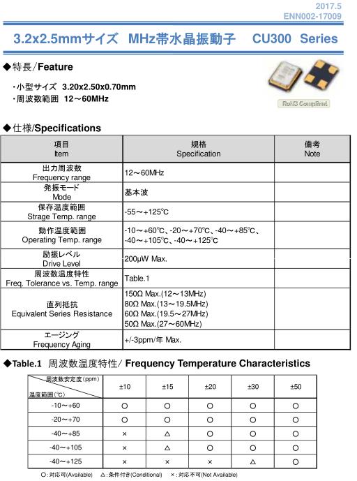 NAKA晶振,CU300晶振,12MHZ晶振,3225mm體積貼片晶振適用于汽車電子領域的表面貼片型石英晶振,本產品已被確定的高信賴性最適合用于汽車電子部件,晶體在極端嚴酷的環境條件下也能發揮穩定的起振特性,晶振本身具有耐熱,耐振,耐沖擊等優良的耐環境特性,滿足無鉛焊接的高溫回流溫度曲線要求,符合AEC-Q200標準.作為一名優秀的企業公民,Naka&Co.,Ltd。的目標是成為“對地球友好的公司”,致力于環境保護并繼續開展以下活動。