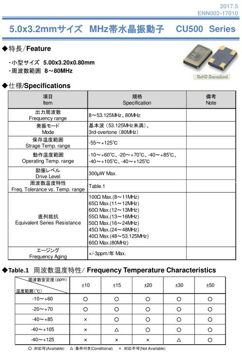 NAKA晶振,CU500晶振,四腳貼片晶振,智能手機晶振,產品具有高精度超小型的表面貼片型石英晶體振蕩器,最適用于移動通信終端的基準時鐘等移動通信領域.比如智能手機,無線通信,衛星導航,平臺基站等較高端的數碼產品,晶振本身小型,薄型具備各類移動通信的基準時鐘源用頻率,貼片晶振具有優良的電氣特性,耐環境性能適用于移動通信領域,滿足無鉛焊接的高溫回流溫度曲線要求.納卡晶振公司是使用模擬電路技術,擅長定制規格的水晶設備制造廠。有強烈要求“低相位噪聲、高頻、高信賴性”的通信設備、廣播設備、測量儀器、交通基礎設施、醫療器械、防衛設備。另外,現在已經成為問題了,對生產中止,實現長期性的產品供應,以滿足顧客未來的企業為目標。