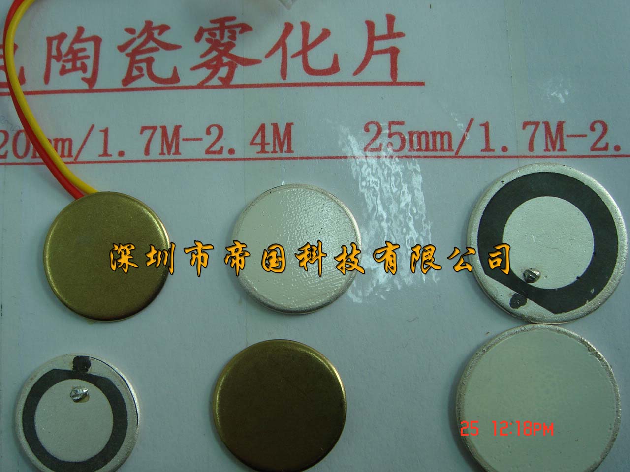 帝國科技公司供應霧化片,直徑從 16mm,20mm,25mm  ,頻率有1,7M /2,4M
