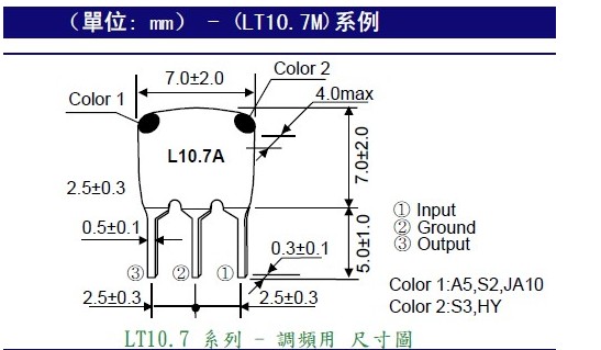 - 調(diào)頻接收機用 LT10.7M 輸入/輸出阻抗 (Ω):330Ω.