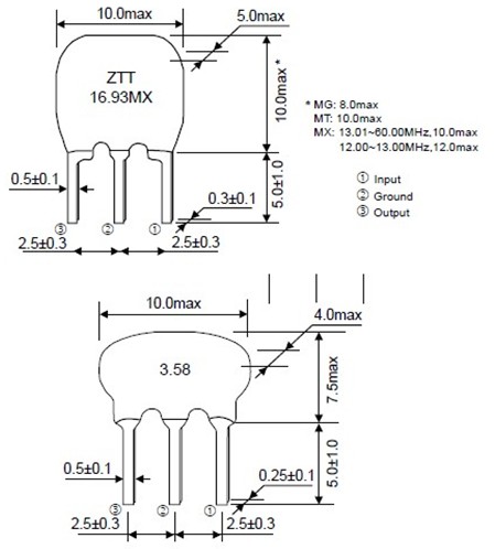 帝國科技生產的陶瓷諧振器 ZTT系列是在原有的ZTA晶振內部添加了內置負載電容,引線腳于原來的二腳演變成三腳直插式,這樣一來減去了外部線路設計時可以省去電容部分,大大減少了線路空間,且可減少元器件的數量,增加穩定性,減小尺寸,為電路設計者們提供了非常的方便,并且外形尺寸也沒有太大的改變.此規格的頻率范圍在 2.0 MHz 至 60.00 MHz,頻率公差為 ±0.5%,±0.3%