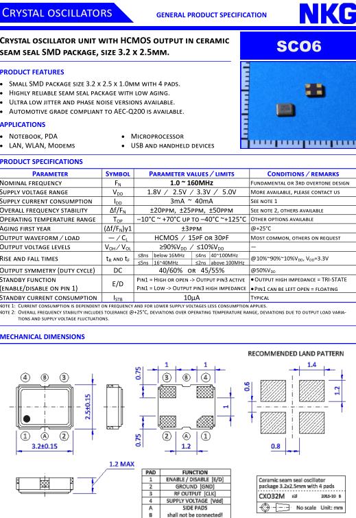 | Nominal frequency | F N | 1.0 ~ 160MHz | Fundamental or 3rd overtone design |