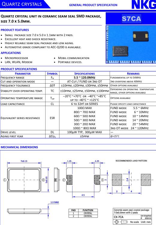 NKG晶振,S7CA晶振,S7CA-16.0000F-18E2-EXT晶振