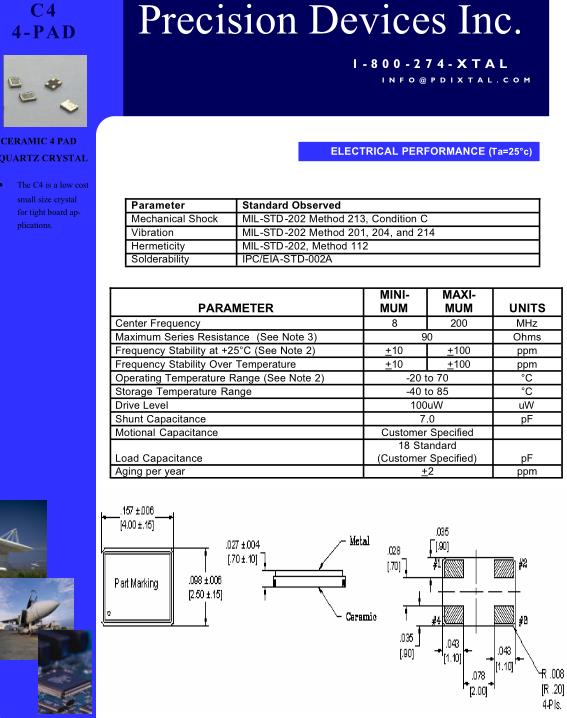 PDI晶振,C4晶振,無源四腳晶振,貼片晶振本身體積小,超薄型石英晶體振蕩器,特別適用于有目前高速發(fā)展的高端電子數(shù)碼產(chǎn)品,因為晶振本身小型化需求的市場領域,小型,薄型是對應陶瓷振蕩器(偏差大)和普通的石英晶體振蕩器(偏差小)的中間領域的一種性價比較出色的產(chǎn)品.產(chǎn)品廣泛用于筆記本電腦,無線電話,衛(wèi)星導航SSD,USB,Blu-ray等用途,符合無鉛焊接的高溫回流焊曲線特性.美國PDI 頻率控制元器件, 主要致力于石英晶振, 濾波器等系列產(chǎn)品規(guī)格的銷售。頻率控制產(chǎn)品:Crystals 石英晶體, Filter 晶體濾波器, XO 晶體振蕩器, VCXO壓控晶振, TCXO 溫補晶振, OCXO 恒溫晶振, TC-OCXO 溫補恒溫晶振, XO SMD封裝系列, XO 引線式封裝系列, TCXO SMD封裝系列, TCXO 引線式封裝系列, OCXO 恒溫晶振, OCXO SMD 封裝系列, OCXO 引線式封裝系列, TCVCXO 溫補壓控晶振.