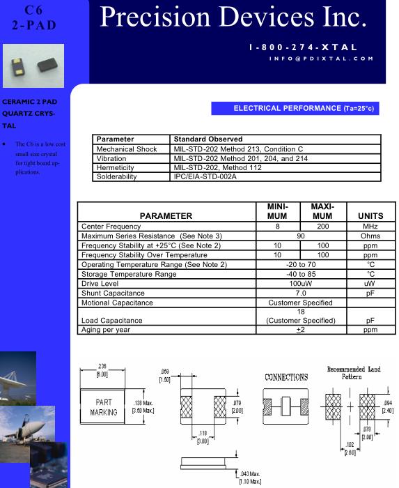PDI晶振,C6晶振,SMD晶振,貼片晶振本身體積小,超薄型石英晶體振蕩器,特別適用于有目前高速發展的高端電子數碼產品,因為晶振本身小型化需求的市場領域,小型,薄型是對應陶瓷振蕩器(偏差大)和普通的石英晶體振蕩器(偏差小)的中間領域的一種性價比較出色的產品.產品廣泛用于筆記本電腦,無線電話,衛星導航SSD,USB,Blu-ray等用途,符合無鉛焊接的高溫回流焊曲線特性.無論什么的要求,我們工程師的職員和銷售人員會指引你哪些是正確適合的產品。PDI包涵一大范圍的市場詳細的能力,能提供任何產品的設計分析。我們會持續介紹新產品和技術的特殊包裝和高頻率設計。