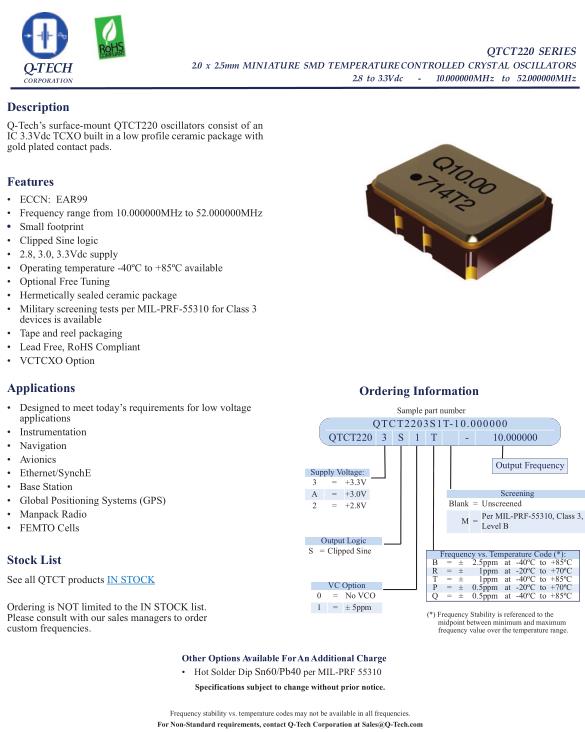 Q-Tech晶振,QTCT220晶振,QTCT2203S1T-10.000000晶振
