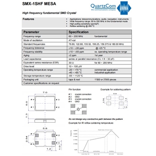 | QuartzCom晶振規格 | 單位 | SMX-1SHF晶振頻率范圍 | 石英晶振基本條件 |