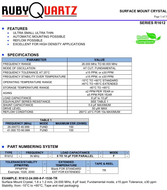 Rubyquartz晶振,R1612晶振,R1612-24.000-8-F-1530-TR晶振