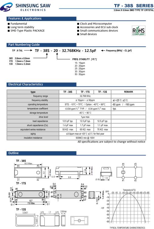 SHINSUNG晶振,TF-17S晶振,TF-17S-20-32.768KHz-12.5pF晶振