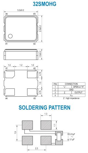 32SMOHG(F) 32SMOHG(G) 32SMOHG(H) : ±15 ppm over -40゜C to +85゜C : ±10 ppm over -40゜C to +85゜C : ±8 ppm over -40゜C to +85゜C |