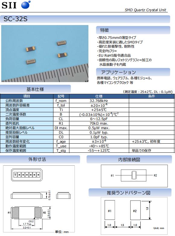 | Q-SC32S03220C5AAE | Seiko精工晶振 | SC-32S | kHz Crystal (Tuning Fork) | 32.768kHz | ±20ppm |