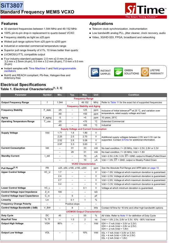 SiTime晶振,SiT3807晶振,SiT3807AC-G2-33EH-24.000000D晶振