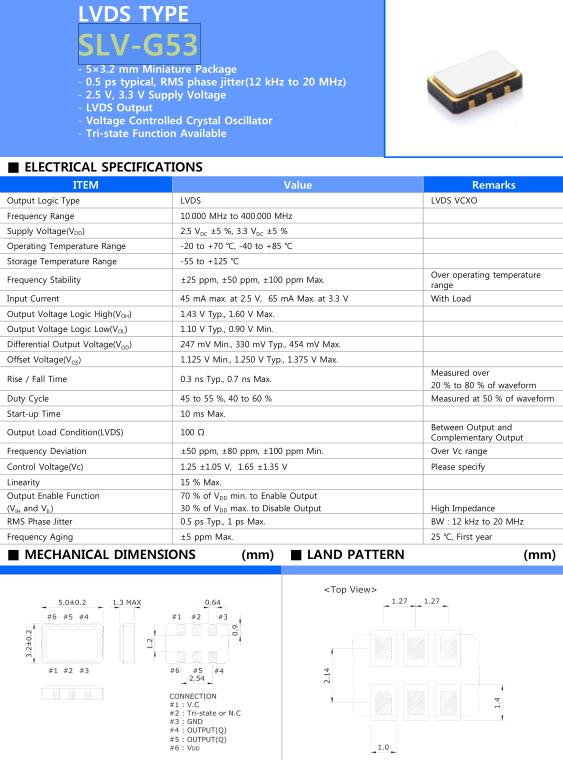 | RMS Phase Jitter | 0.5 ps Typ., 1 ps Max. | BW : 12 kHz to 20 MHz |
