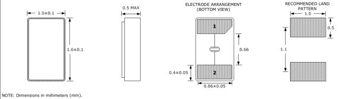 | 串聯電阻(ESR) | R1 | 如下表所示 | -40°C — +85°C, DL = 100μW | |