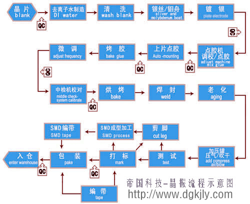 關于晶振,石英晶振,貼片晶振,32.768K,每天都在重復客戶和客戶講解著這些產品,原材料晶片到成品入庫,那么你知道在制作過程中有多少個程序嗎?有多少個環節是要QC檢驗的嗎?一起看看流程示意圖吧!