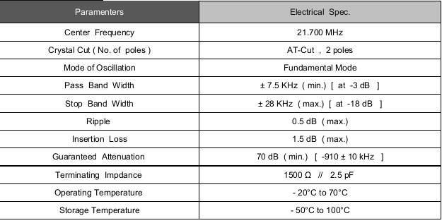 對于圓片晶振,X、Z 軸較難區分,所以石英晶振對精度要求高的對講機濾波器產品(如部分定單的 UM-1),會在 X 軸方向進行拉弦(切掉一小部分),以利于晶振的晶片有方向的裝架點膠,點膠點點在 Z 軸上。保證晶振產品的溫度特性。石英晶振產品電極的設計:石英晶振產品的電極對于石英晶體元器件來講作用是1.改變頻率;2.往外界引出電極;3.改變電阻;4.抑制雜波。第1、2、3項相對簡單,第4項的設計很關鍵,電極的形狀、尺寸、厚度以及電極的種類(如金、銀等)都會導致第4項的變化。特別是隨著晶振的晶片尺寸的縮小對于晶片電極設計的形狀及尺寸和精度上都有更高的要求---公差大小、位置的一致性等對貼片濾波器晶振產品的影響的程度增大,故對電極的設計提出了更精準的要求瑪居禮晶振,貼片濾波器,21.7MQ15A晶振,移動無線通訊單片晶體濾波器。