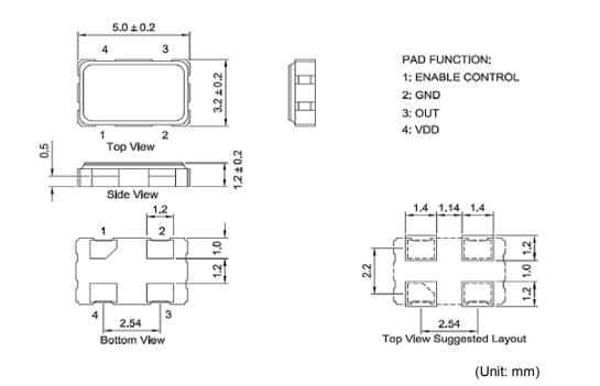 | Size/Dimension尺寸 | 5.00mm x 3.20mm | 最小包裝數MPQ: | 1000 |