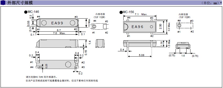 MC-146貼片晶振,MC-156諧振器,愛普生32.768K晶振,MC-156 32.7680KA-A0:ROHS