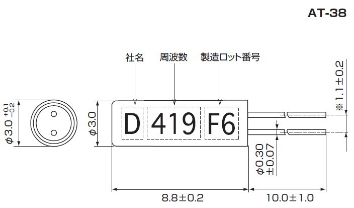 AT-38音叉晶振,KDS晶體諧振器,圓柱晶振,引線型壓電石英晶體采用全新自動生產設備,嚴格的對每顆晶體各項參數指標檢測把關,比如電阻的測量技術:引進一批先進的檢測儀器,準確度達到±10ppm.在測量應用上制定一套標準的測量方法保證測量的準確性、儀器的精度、測試的一致性.