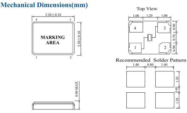 | Size/Dimension尺寸 | 3225mm | 安裝方式 Installation: | Surfacemount |