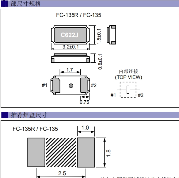 "FC-135R 32.7680KF-A3",所有石英晶體振蕩器和實時時鐘模塊都以IC形式提供.