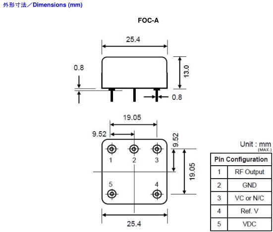 | 石英晶振規格 | 單位 | FOC-A 25.4*25.4mm 晶振說明 | 進口振蕩器基本條件 |