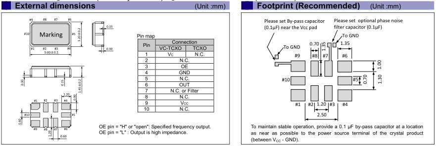 有源高頻晶振振蕩電路中負載電容的不同,可能導(dǎo)致振蕩頻率與設(shè)計頻率之間產(chǎn)生偏差.試圖通過強力調(diào)整,可能只會導(dǎo)致不正常的振蕩.在使用之前,請指明該振動電路的負載電容(請參閱“負載電容”章節(jié)內(nèi)容).